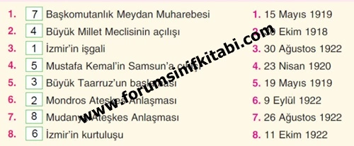 C. Aşağıda Millî Mücadele’mizle ilgili olaylardan bazıları ve bunların tarihleri karışık olarak verilmiştir. Her bir olayın başındaki kutucuğa ait olduğu tarihin numarasını yazınız.