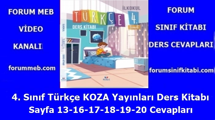 “4. Sınıf Türkçe Kitabı Sayfa 13-16-17-18-19-20 KOZA Yayınları” konusunu videolu bir şekilde izleyebilir ve dinleyebilirsiniz.