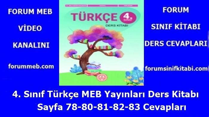 “4. Sınıf Türkçe Ders Kitabı Sayfa 78-80-81-82-83 Cevapları”