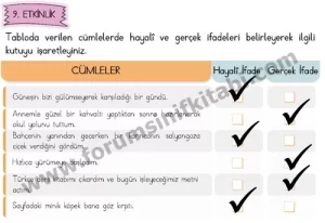 Soru : Tabloda verilen cümlelerde hayalî ve gerçek ifadeleri belirleyerek ilgili kutuyu işaretleyiniz.