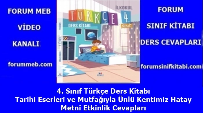 4. Sınıf Türkçe Kitabı Tarihi Eserleri ve Mutfağıyla Ünlü Kentimiz Hatay Metni Etkinlik Cevapları