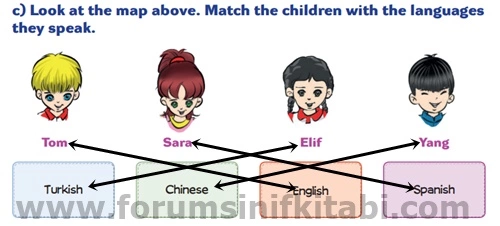 c) Yukarıdaki haritaya bakın. Çocukları konuştukları dillerle eşleştirin.