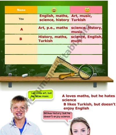 10. Walk around the classroom and ask your friends about their favorite classes. Then talk about them.