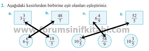2. Aşağıdaki kesirlerden birbirine eşit olanları eşleştiriniz.