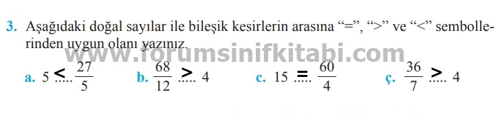 3. Aşağıdaki doğal sayılar ile bileşik kesirlerin arasına sembollerinden uygun olanı yazınız.