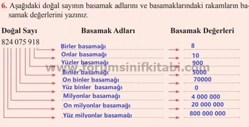 6. Aşağıdaki doğal sayının basamak adlarını ve basamaklarındaki rakamların basamak değerlerini yazınız.