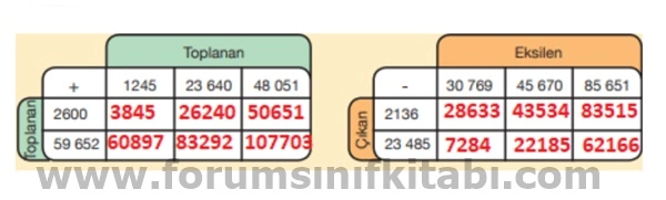 3) Tablolardaki toplama ve çıkarma işlemlerini yapınız.