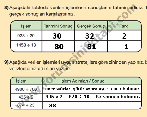 5. Sınıf Matematik Kitabı Sıra Sizde Metni Etkinlik Cevapları