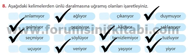 8. Aşağıdaki kelimelerden ünlü daralmasına uğramış olanları işaretleyiniz.