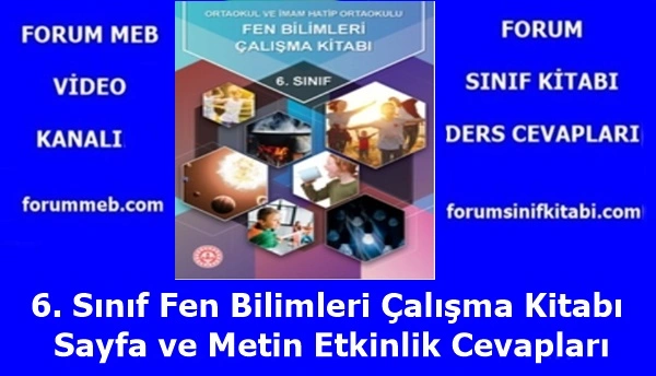Ortaokul ve İmam Hatip Ortaokulu 6. Sınıf Fen Bilimleri MEB Yayınları Çalışma Kitabı Sayfa ve Metin Etkinlik Cevapları