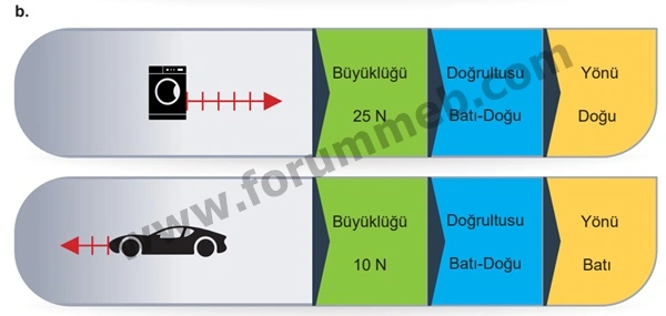Soru : b. Özellikleri verilen kuvvetleri, görsellerin üzerinde çizerek gösteriniz.