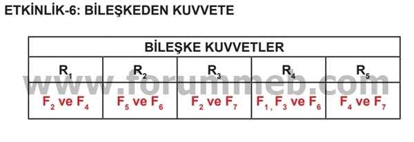 Soru : a. Görsellerde verilen kuvvetlerin özelliklerini tabloya yazınız.