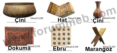 A. Osmanlı Devleti Dönemi’ne ait aÅŸağıda yer alan eserlerin hangi sanat dallarına ait olduÄŸunu araÅŸtırarak altlarına yazınız.Â