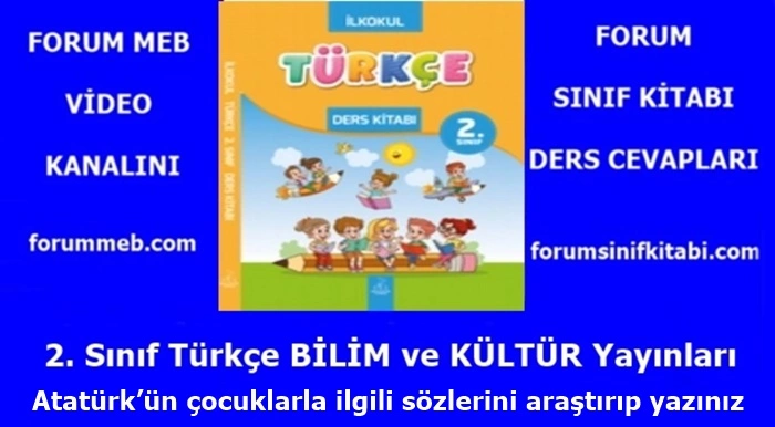 2. Sınıf Türkçe Kitabı Atatürk’ün çocuklarla ilgili sözlerini araştırıp defterinize yazınız. konusunu kısaca ele alacağız.
