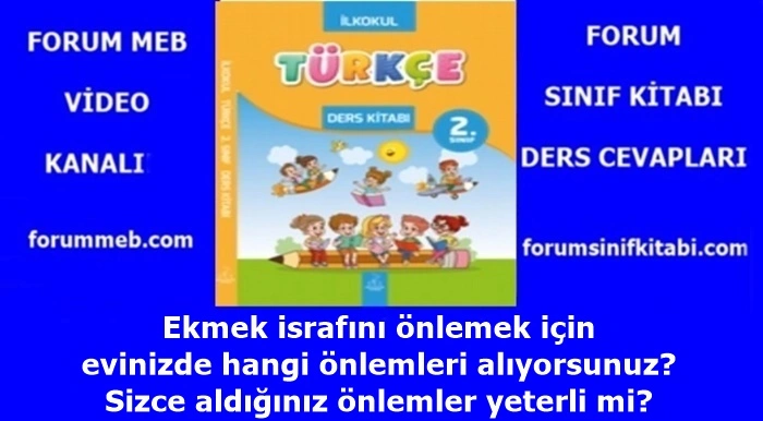 2. Sınıf Türkçe Kitabı Ekmek israfını önlemek için evinizde hangi önlemleri alıyorsunuz? Sizce aldığınız önlemler yeterli mi? konusunu kısaca ele alacağız.
