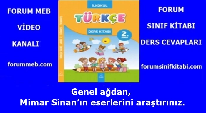 2. Sınıf Türkçe Kitabı Genel aÄŸdan, Mimar Sinan’ın eserlerini araÅŸtırınız. konusunu kısaca ele alacağız.Â
