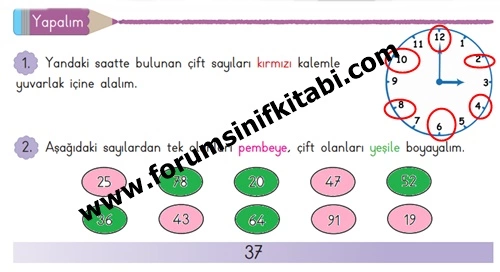 1. Yandaki saatte bulunan çift sayıları kırmızı kalemle yuvarlak içine alalım.