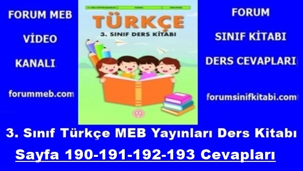 3. Sınıf Türkçe MEB Yayınları Ders Kitabı 156, 157, 158, 159, 160, 161, 162, 163, 164, 165, 166, 167, 168, 169, 170, 171, 172, 173, 174, 175, 176, 177, 178, 179, 180, 181, 182, 183, 184, 185, 186, 187, 188, 189, 190, 191, 192, 193. Sayfa Cevapları için tıklayınız.