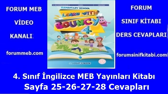 4. Sınıf İngilizce Kitabı MEB Yayınları Sayfa 21, 22, 23, 24, 25, 26 ,27, 28, 29, 30, 31, 32, 33. Sayfa cevapları için tıklayınız.