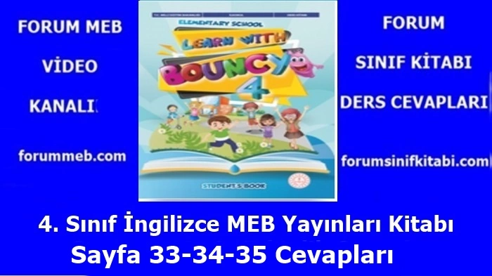 4. Sınıf İngilizce Kitabı MEB Yayınları Sayfa 33, 34, 35, 36, 37, 38, 39, 40 ,41, 42, 43, 44, 45. Sayfa cevapları için tıklayınız.