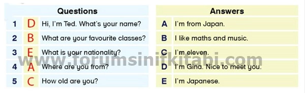 5. Sınıf İngilizce Kitabı Hello Metni Etkinlik Cevapları