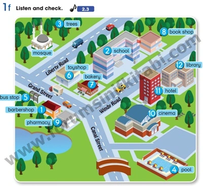 5. Sınıf İngilizce Kitabı 2. Ünite My Town Let’s Practice Metni Etkinlik Cevapları