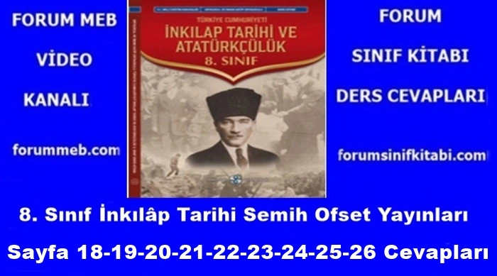 Ortaokul 8. Sınıf İnkılâp Tarihi ve Atatürkçülük Semih Ofset Yayınları Kitabı Sayfa ve Etkinlik Metin Cevapları