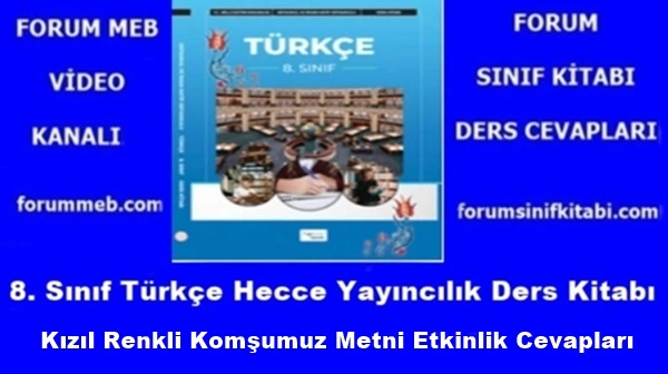 8. Sınıf Türkçe Kitabı Kızıl Renkli Komşumuz Metni Etkinlik Cevapları