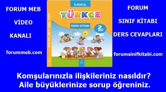2. Sınıf Türkçe Kitabı Komşularınızla ilişkileriniz nasıldır? Aile büyüklerinize sorup öğreniniz. konusunu kısaca ele alacağız.