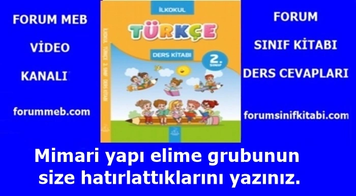 2. Sınıf Türkçe Kitabı Mimari yapı elime grubunun size hatırlattıklarını yazınız. konusunu kısaca ele alacağız.Â