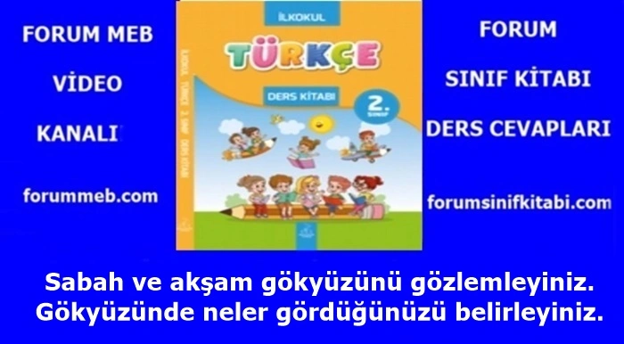 2. Sınıf Türkçe Kitabı Sabah ve akşam gökyüzünü gözlemleyiniz. Gökyüzünde neler gördüğünüzü belirleyiniz. konusunu kısaca ele alacağız.