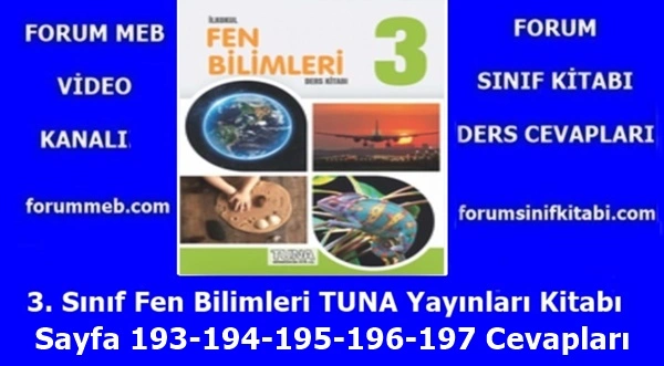 “3. Sınıf Fen Bilimleri TUNA Yayınları Ders Kitabı Sayfa 200-201 Cevapları”
