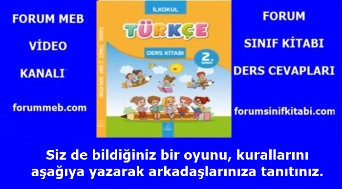2. Sınıf Türkçe Kitabı Siz de bildiğiniz bir oyunu, kurallarını aşağıya yazarak arkadaşlarınıza tanıtınız. konusunu kısaca ele alacağız.